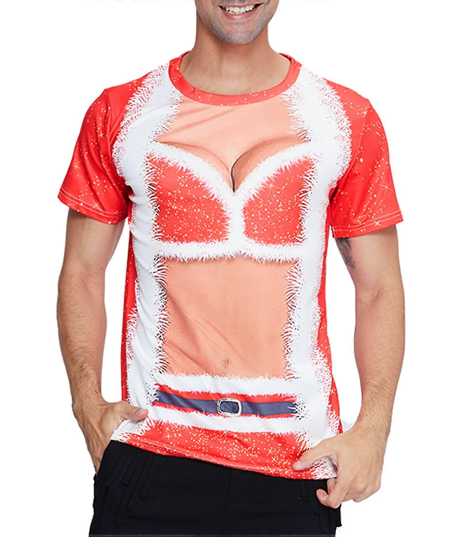 Santa Style 3D Muscle Print Men's T-Shirt Red & White Christmas Graphic Crew Neck Short Sleeve Casual Holiday Novelty Tee