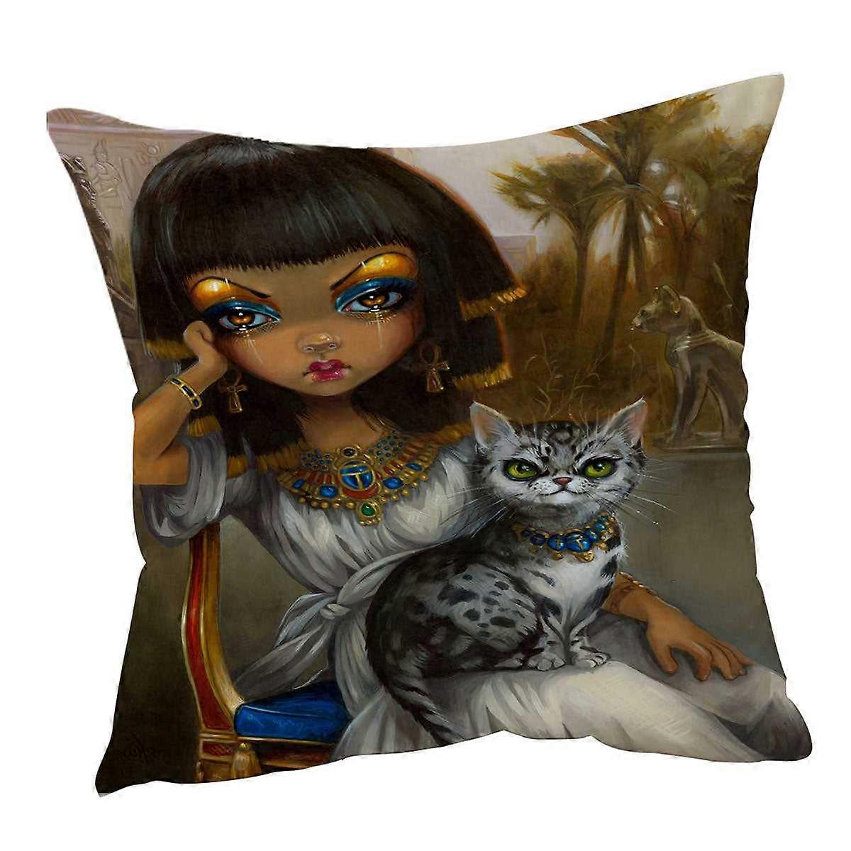 Sanura Beautiful Egyptian Princess with Her Mau Cat Cushion Cover