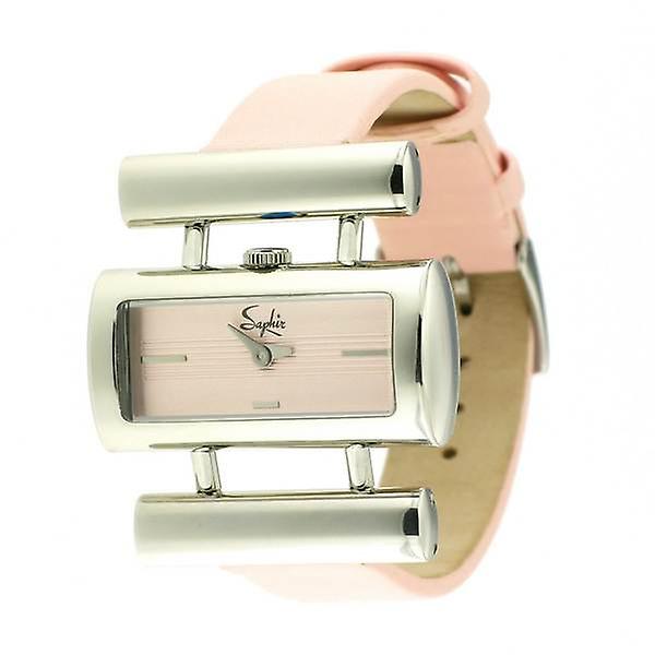Cute ladies watch pink face silver dial and a rectangular silver polished case look. Pink Leather Strap