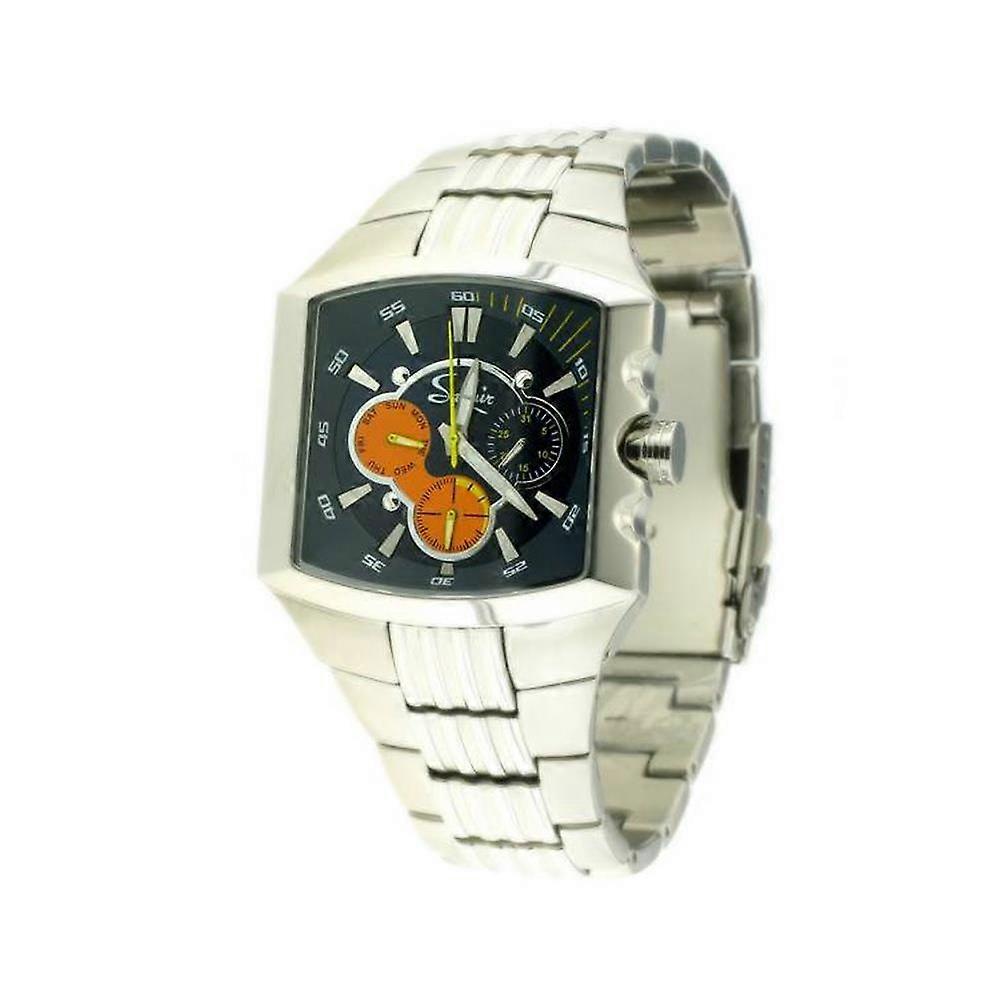 Modern striking look on this Saphir mens watch. Three sub dials for day date and hour in 24 hour format with a unique black and orange contrast, great attention to detail and a fabulous polished stainless steel bracelet strap to complete the quality look. Introducing Saphir WatchesSaphir watches were established in the late 1980's and their designs originate from Austria. They are at the forefront of leading fashion trends, made with true European quality and reliability. Saphir watches are fantastic timepieces that are made by the people who understand and care about watchmaking. Their styles are unique, chic, and are deeply rooted in the heritage of developing exceptional timepieces.Designed with expert craftsmanship and attention to detail, we are delighted to present the Saphir collection which includes a selection ideal for casual, business or dress and all at an affordable price.The face of a watch, the dial, is the expression of its innermost nature, displays its functions and gives the watch its unique identity. In this sense, the beauty of a fine watch dial is the most visible expression of the movement that brings it to life. Indeed, the layout of the of the hands, sub-dials, apertures and other indications dictate the dial's appearance. The designers and craftsmen of Saphir Watches, therefore do so with the specifications imposed by the dial in mind.Dial-making is an art and a craft in its own right that demands considerable expertise, and very often "secrets" that are handed down from one generation to the next. Visually, the dial must satisfy a dual requirement, it must be pleasing to the eye and legible at a glance. A host of information must be harmoniously conveyed by means of hands or apertures on a surface that often barely exceeds a few square centimetres. Often a dial is separated into several sections and beyond its refinement and beauty it must highlight and distinguish these different zones. To achieve this, the Saphir Watches dial-maker masters artisanal techniques that are often centuries-old.With this understanding of what goes into creating a Saphir Watch, we hope, anticipateand believe that our timepieces will give you the same pleasure wearing them, as we had in manufacturing them.