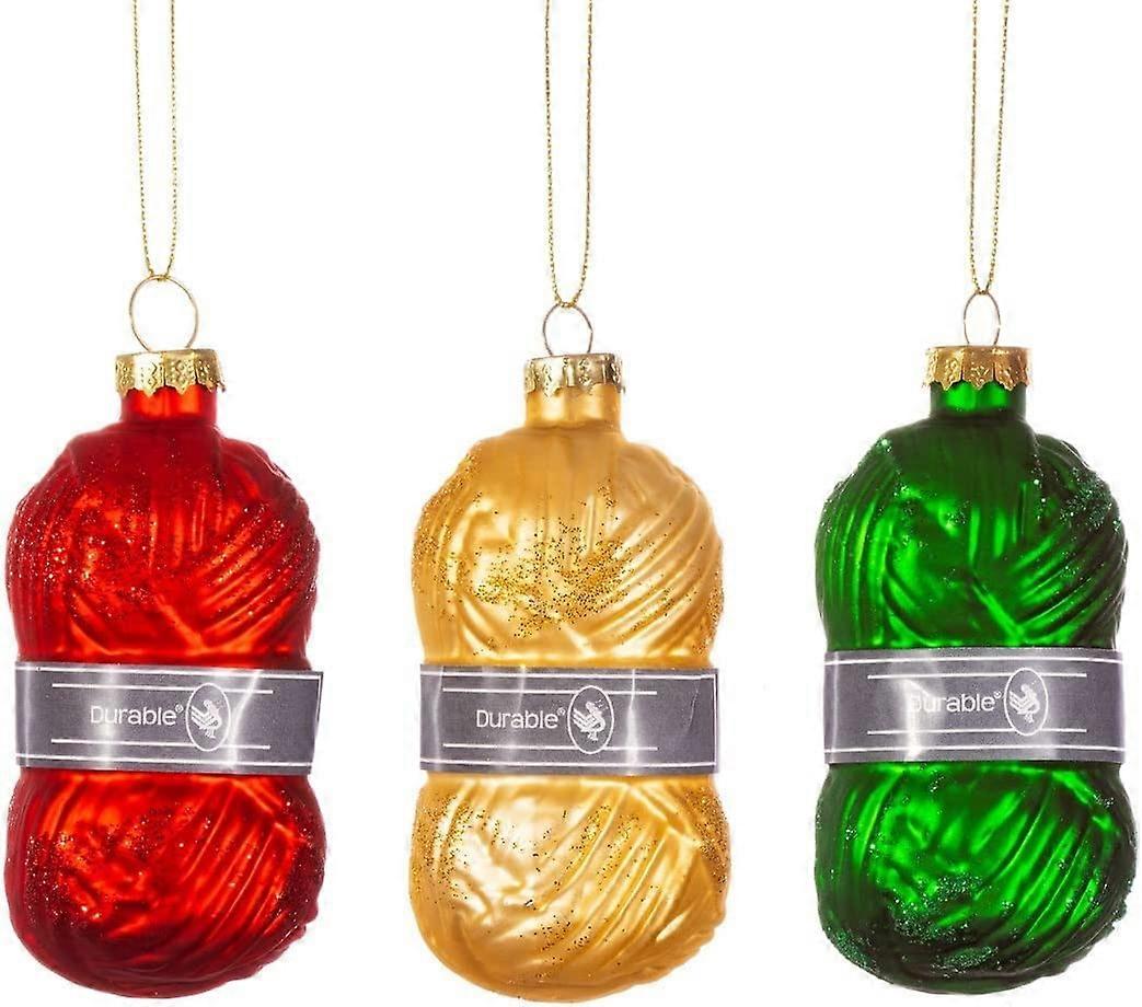 SASS AND BELLE SET OF 3 GLASS KNITTING WOOL CHRISTMAS TREE DECORATIONS Celebrate your favourite hobbies with this lovely set of knitting wool decorations from the fantastic Sass and Belle [/sass-and-belle.html]range. This set includes three decorations, each is decorated with red, gold and green. Finished with subtle touches of glitter for that utterly festive look. The realistic look of these knitting wools is enough to make your Christmas tree look luxurious and colourful, a brilliant set of ornaments if you love knitting