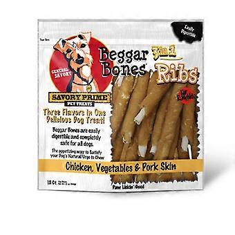 Savory Prime Beggar Bone 3in1 Ribs Dog Treat Chicken, Vegetable and Pork, 1 Pack of 18 Count