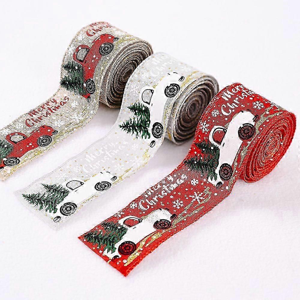SAYDY 3 Pack Christmas Decorations Color Car Print Ribbon Christmas Tree Decoration Ribbon Color Bar 16.4 Feet