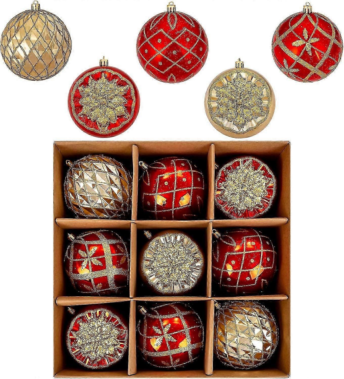 SBSG 9PCS Christmas Balls - Christmas Ornaments Set - Red and Gold Painted Christmas Balls,3.94 Inch Exquisite Christmas Balls for Various Christmas P