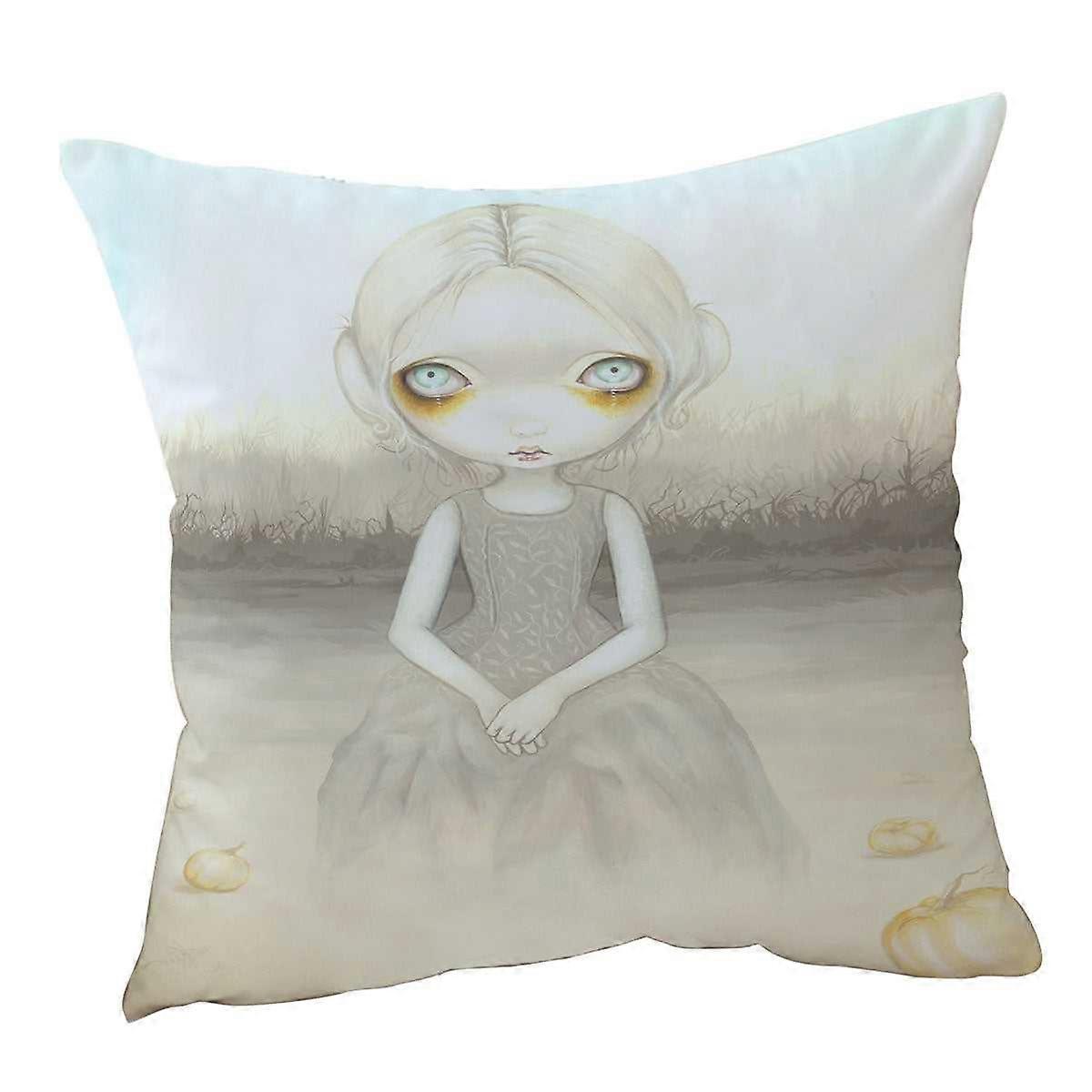 Scary Art Girl Ghost of the Pumpkin Patch Cushion Cover