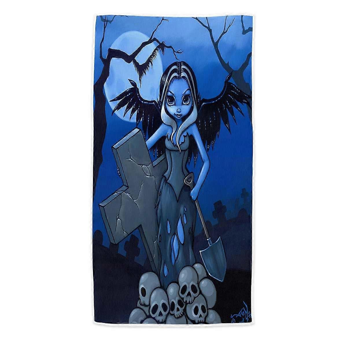 Scary Art Gothic Angel and Skulls the Gravedigger Microfiber Beach Towel