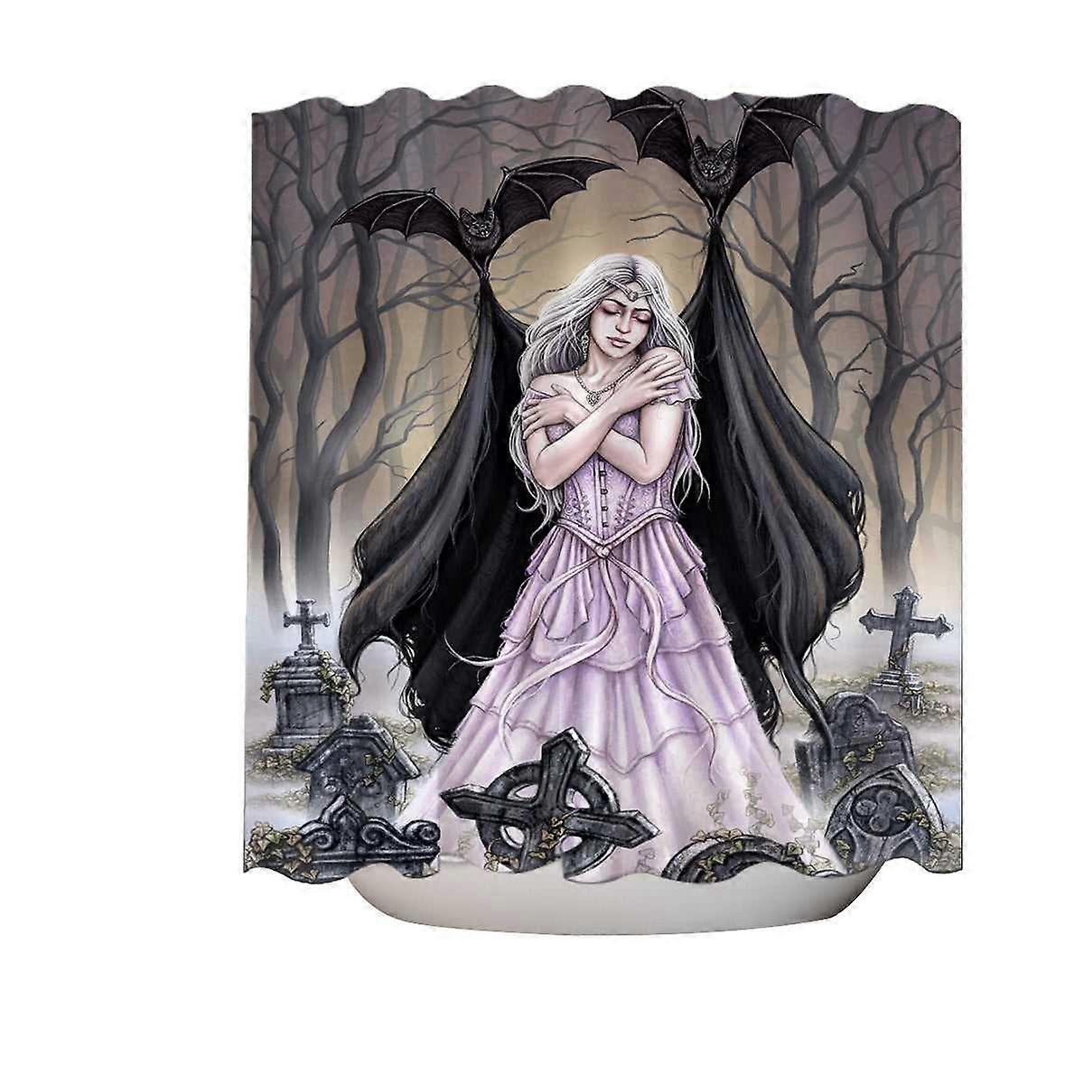 Scary Art Graveyard Bats Night Embrace for Lonely Woman Shower Curtain