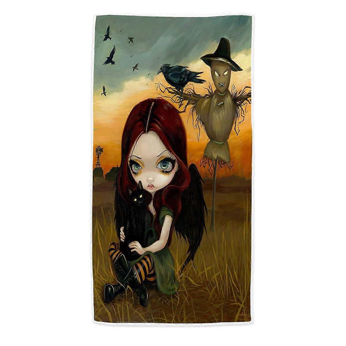 Scary Autumn the Scarecrow and Crow Winged Girl Microfiber Beach Towel