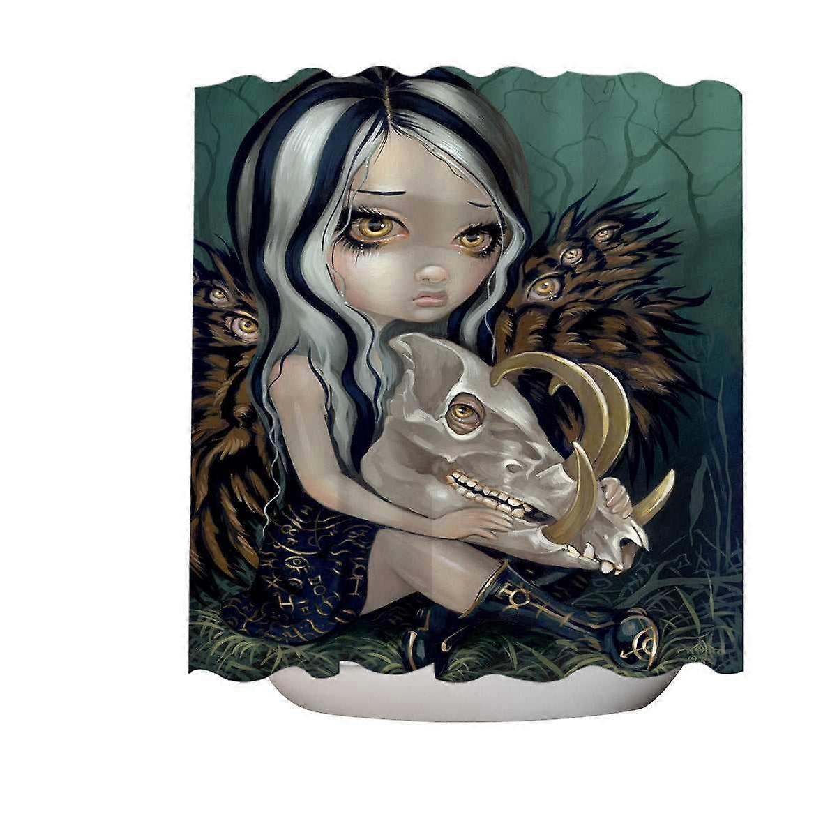 Scary Fantasy Art Girl and Babirusa Skull Shower Curtain