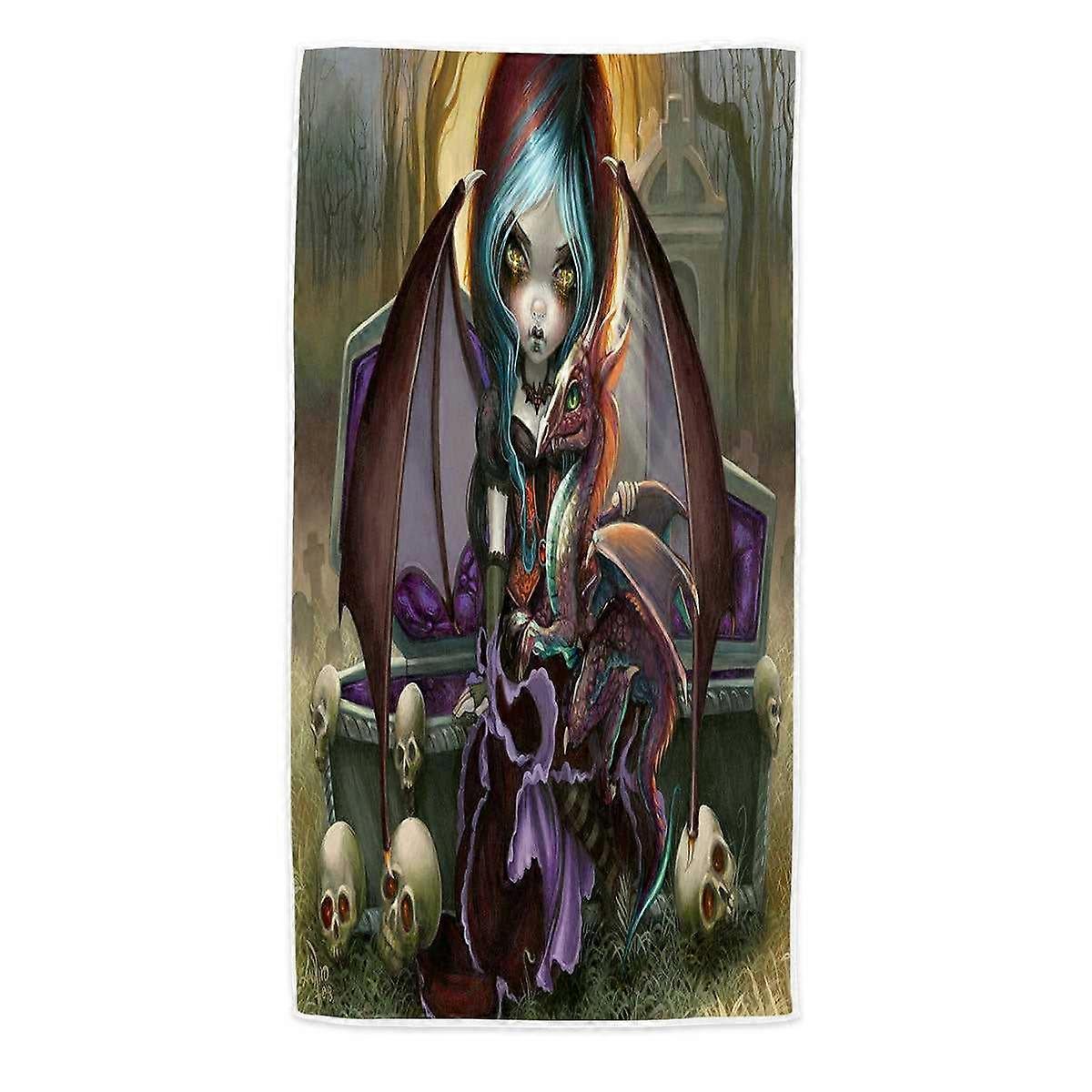 Scary Gothic Art Dragon Girl and Vampire Dragonling Microfiber Beach Towel