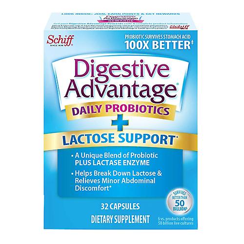 Schiff/Bio Foods Digestive Advantage Daily Probiotics + Lactose Support, 32 caps (Pack of 1)