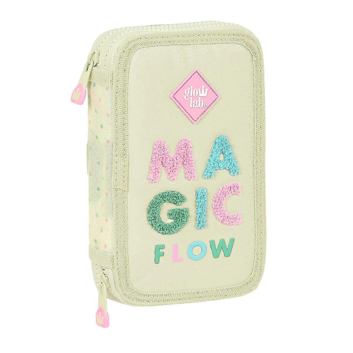 School Case with Accessories Glow Lab Magic flow Beige 12.5 x 19.5 x 4 cm (28 Pieces)
