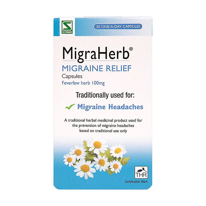 SALE ITEM - THIS PRODUCT IS ON TEMPORARY SALE. THERE ARE ONLY LIMITED ITEMS AT THIS PRICE. PLEASE NOTE BEST BEFORE DATE: 30 SEP 2025 A traditional herbal medicinal productContains Feverfew herbFor the prevention of migraine headaches A traditional herbal medicinal product used for the prevention of migraine headaches exclusively based upon long-standing use as a traditional remedy. MigraHerb should only be taken by patients who have been diagnosed with migraine by their doctor MigraHerb contains Feverfew, a member of the daisy family and looks somewhat similar to camomile at first glance. It has a strong distinctive smell and is particularly disliked by bees. It grows wild in many parts of Europe and the British Isles.