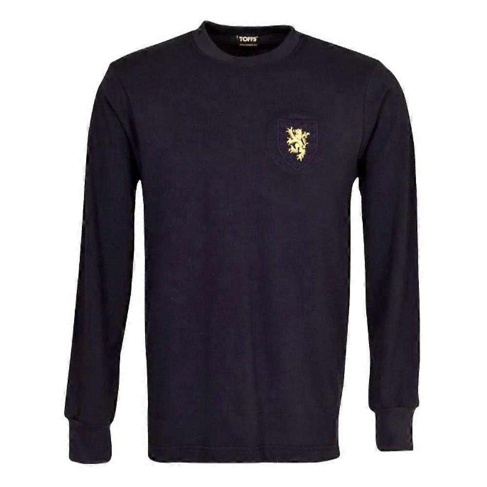 Back in November 1872, the first ever recognised Scotland team, made up of Queen s Park players, faced England in front of 4,000 people. Taking place at the West of Scotland Cricket Ground in Partick, Glasgow, the match finished 0-0.Now 150 years on, the national side has seen plenty of highs and lows as well as some standout kits along the way.Regular Fit. Badge. Long sleeve. Round Neck.Heavyweight 100% cotton jersey in a soft durable 2 ply Combed Cotton 270/275 gsmFine gauge tight knit fabric that retains its shape when machine washedMade in Great BritainMachine washable.