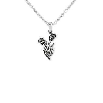 Scottish Thistle Flower Of Scotland Necklace Pendant - Marcasite Stones - Includes A 16"Silver Chain