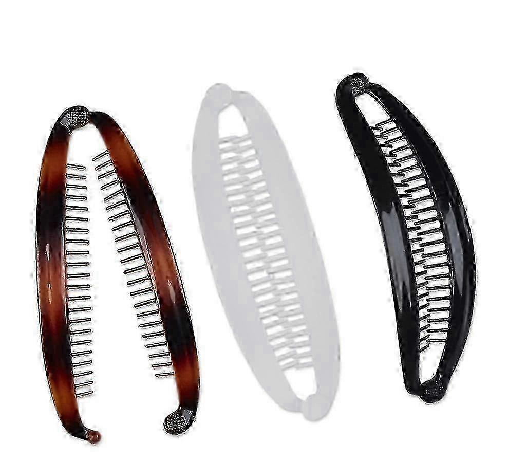 Scunci Fashion Banana Clip Combs In Black, Tortoise Shell, And Clear, 3 Ea