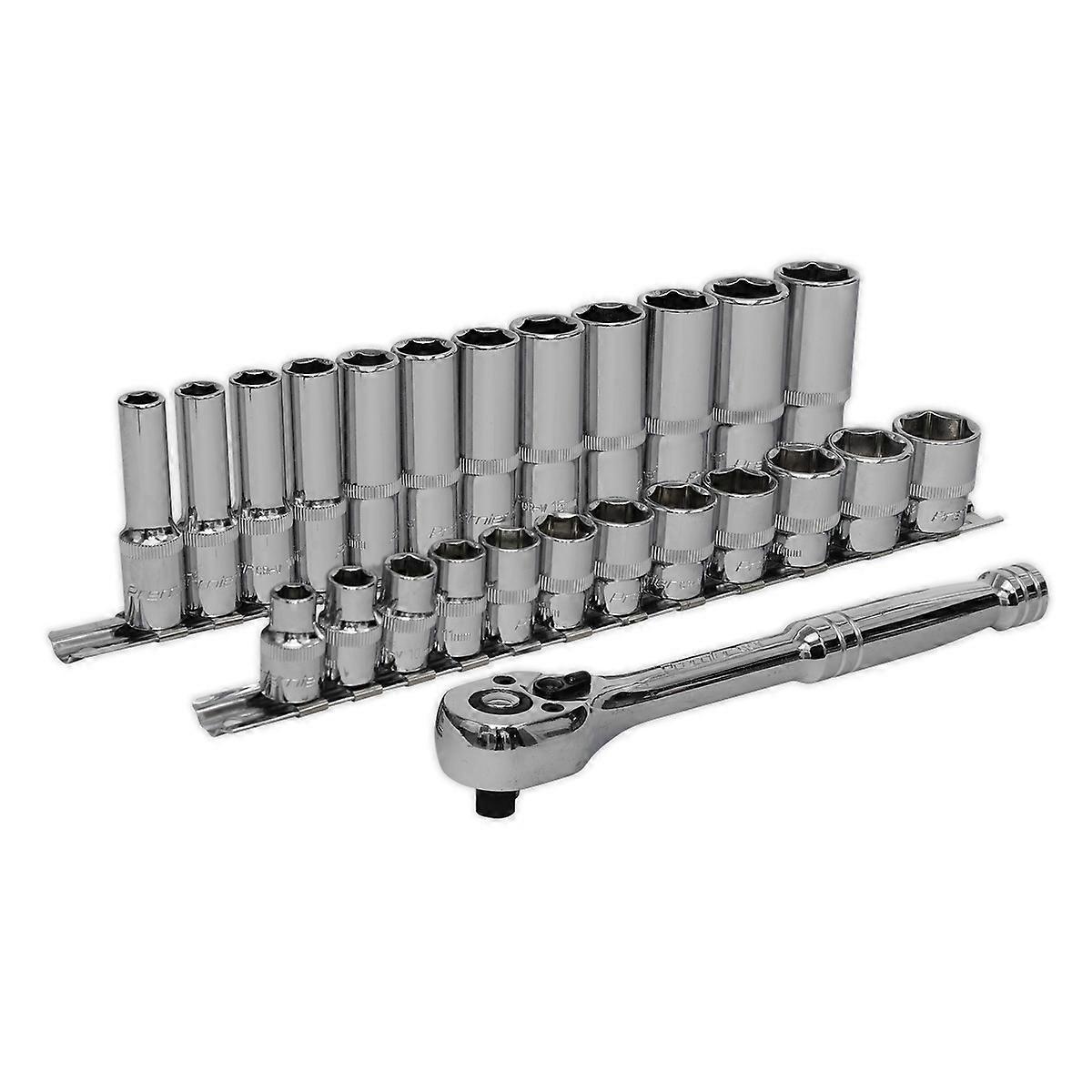 Sealey Ak66722 Ratchet Wrench & Socket Rail Set 25Pc 3/8In Sq Drive