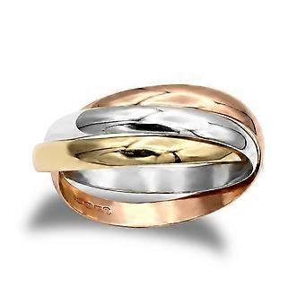 Jewelco London Ladies vankka 9ct keltainen valkoinen ja ruusu kulta Interlocked 2mm Venäjän Häärengas