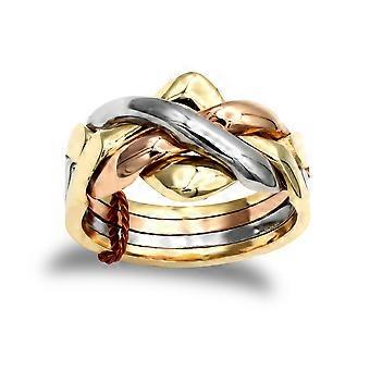 Jewelco London Men ' s vankka 9ct keltainen valkoinen ja ruusu kulta 8-osainen Puzzle Ring