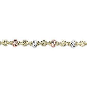 Jewelco London 9ct Kolmivärinen kultasolmu Motif-kaulakoru rannekoru 17"