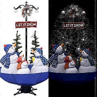 Joulukuusi lumella ja sateenvarjon jalustalla, sininen, 170 cm, PVC
