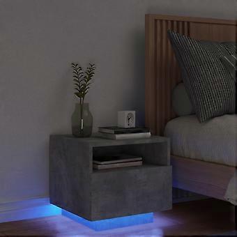 Yöpöytä LED-valoilla, betoninharmaa puukomposiitti