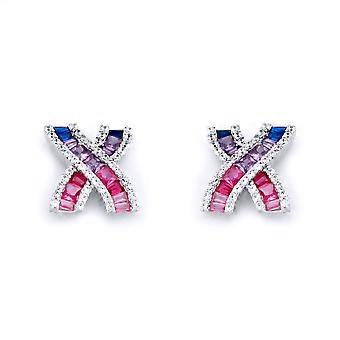 Jewelco Lontoo Rhodium Hopea Pinkki Lila Blue Prinsessa Patonki CZ Crossroads Channel Kisses Stud Korvakorut