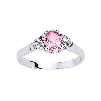 Jewelco Lontoo Naiset Sterling Hopea Vaaleanpunainen Soikea kuutio Zirconia Solitaire kihlasormus