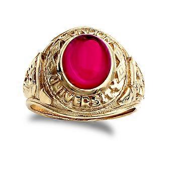 Jewelco Lontoo Miesten 9ct Kulta Rubiininpunainen Soikea Cabochon CZ Solitaire University College Sormus
