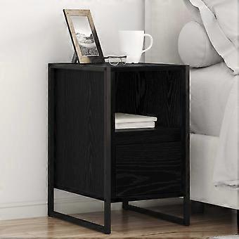 Musta yöpöytä tammiviimeistelyllä, 39,5 x 30 x 50 cm, insinööripuuta