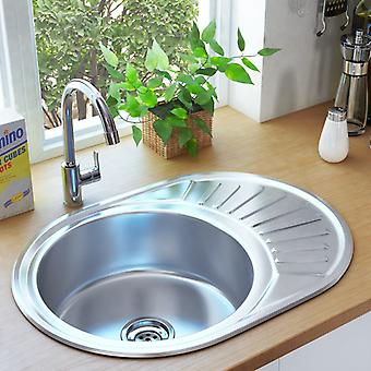 Sisäänrakennettu pesuallas seulalla ja siphon-soikealla ruostumattomalla teräksellä