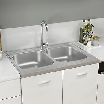 Kaksinkertainen pesuallas hopea 800x600x155 mm ruostumaton teräs