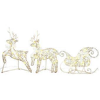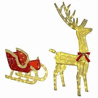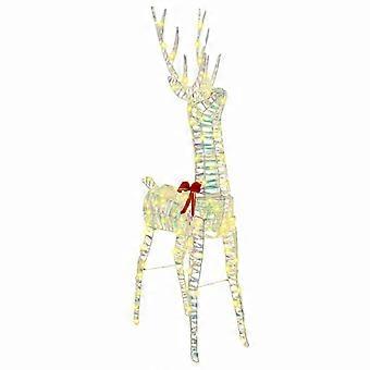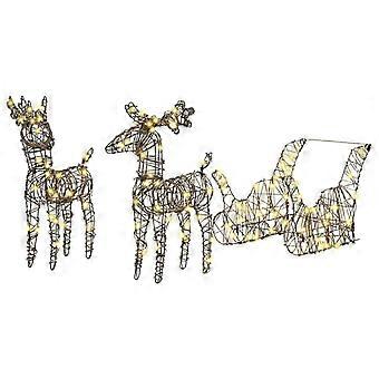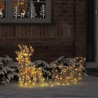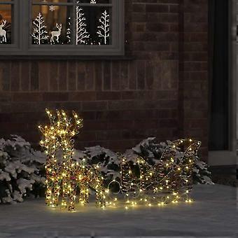 Poronvetoinen reki 140 lämpimän valkoisella LEDillä, 60 cm, rottinki