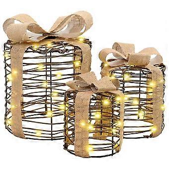 Lahjarasiakoriste, 3 osaa, lämmin valkoinen, 20 x 20 x 20 cm, rottinki