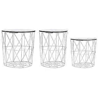 Sisäkkäin asettuvat pöydät, 3 kpl, valkoinen, puupohjainen materiaali