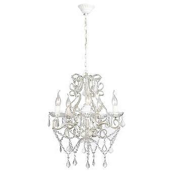 Antiikkivalkoinen kattokruunu 5 x E14-lamppua