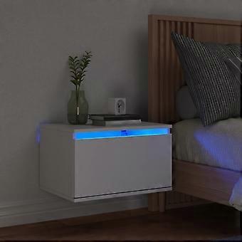 Yöpöytä LED-valoilla, valkoinen, puukomposiitti