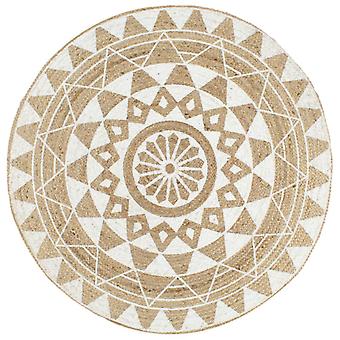 Matto Käsintehty juutti valkoinen painatus 120 cm