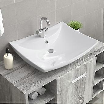 Ylellinen keraaminen pesuallas suorakaiteen muotoinen ylivuoto ja hana reikä
