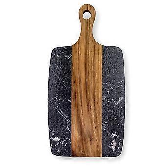 Leikkuulauta, puu & marmori 35 x 18 x 1,5 cm - keittiölautanen, tarjoilulautanen kahvalla
