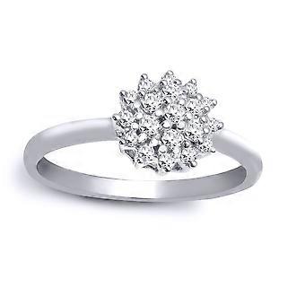Jewelco London Solid 18ct valkokultainen klusterisarja pyöreä G SI1 0.5ct timantti 7 kivikukkaklusterirengas 8mm