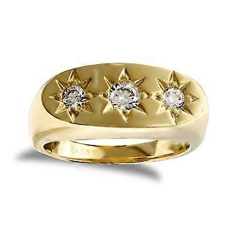 Jewelco London 男士纯 9 克拉金白色圆形明亮立方氧化锆星星套装 3 石三部曲吉普赛戒指 Jewelco London