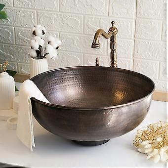 Handmade Dark Copper Vessel Sink - Hammered Solid Copper Bathroom & Kitchen Sink - Drain Cap Included