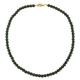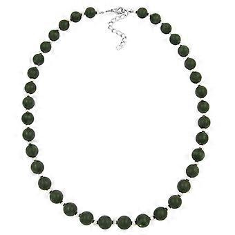 Kette 10mm Perle Kunststoff olivgrün-matt mit 4mm Perlen silberfarben 50cm