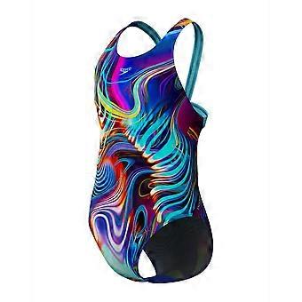 Speedo Tyttöjen Digitaalinen Allover Leaderback Uimapuku - Sininen/Multi Speedo