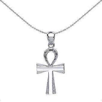 Jewelco London Ladies Sterling Silver Barked Ankh Cross Riipuskaulakoru 18 tuumaa Jewelco London