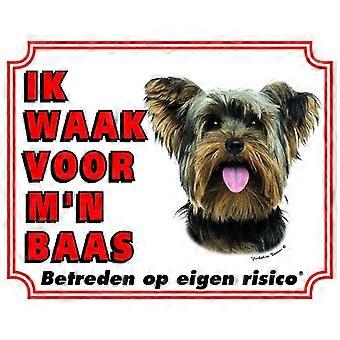 Stickerkoning Yorkshire Terrier Waakbord - Ik Waak Voor Mijn Baas (2) Stickerkoning