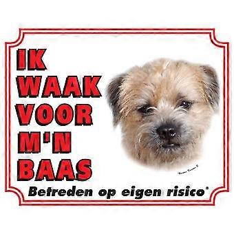 Stickerkoning Border Terrier Waakbord - Ik Waak Voor Mijn Baas Stickerkoning