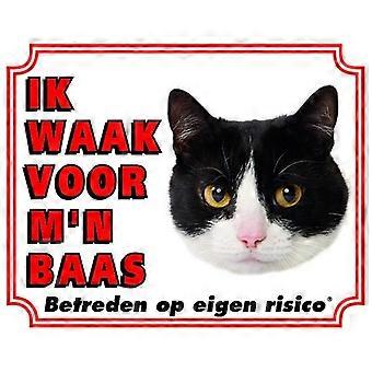 Stickerkoning Katten Waakbord - Ik Waak Voor Mijn Baas Zwart-wit Stickerkoning
