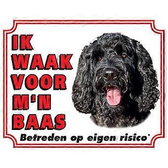 Stickerkoning Labradoodle Waakbord - Ik Waak Voor Mijn Baas Zwart Stickerkoning